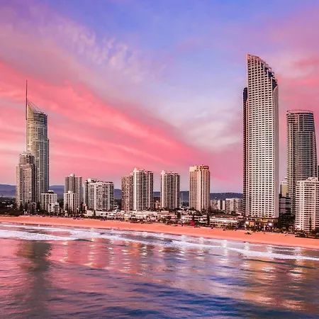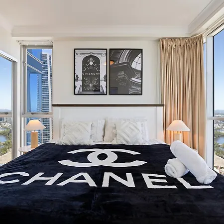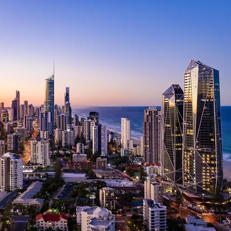 Etwa 6 Fußminuten von den Timezone Surfers Paradise entfernt gelegen, lockt die Ferienwohnung Designer Feels At Chevron High Floor With Ocean Views Gold Coast mit einem Whirlpool, einer Sauna und einem Hallenbad. Das Apartment ist in 250 Meter Entfernung vom Wachsfigurenkabinett und die Fahrgeschäfte Sling Shot & Vomatron liegt in circa 600 Meter Entfernung.